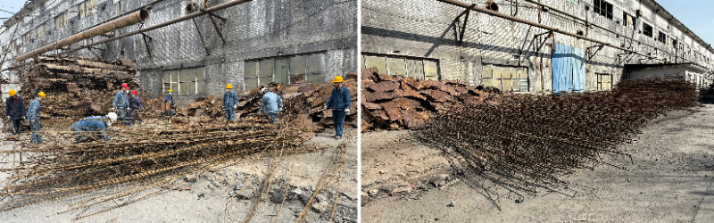 活動中,大家通過分工協同,密切配合,一部分黨員進行拆卸分裝,一部分黨員撿拾散落鐵皮,一部分黨員轉運碼放,將擋雨板和鋼筋進行分離,同時將鋼筋整齊碼放。經過一下午的辛勤勞動,老系列廠區一側拆解下來的擋雨板及鋼筋被分離,本次活動不僅對廢舊材料應收盡收,更將可重復利用材料進行二次分揀,真正實現物盡其用。